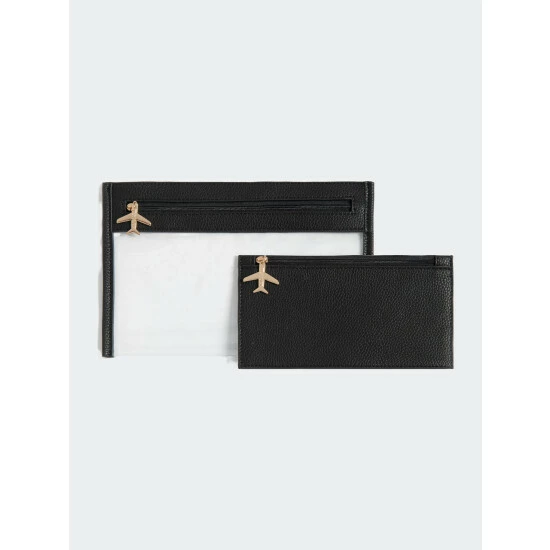 – Gold hardware- Top zip closure- Vegan- Large: L 10″ x W 0.5″ x H 6.75″- Small: L 7.75″ x W 0.5″ x H 4.25″