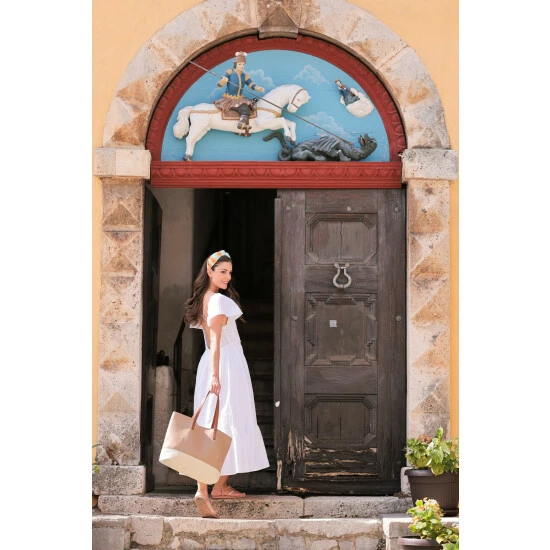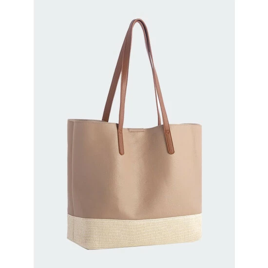 Spruce up your summer accessories with Shiraleah’s Esme Tote. This tote features a smooth vegan leather texture that is contrasted by its woven trim, giving this bag a fun summer update. The Esme Tote is equipped with double handles, magnetic snap closure, and inner zip pocket, perfect for carrying your essentials around town. Pair with other items from Shiraleah to complete your look.