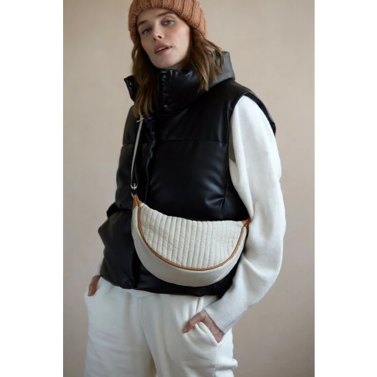 – Gold hardware- Adjustable cross-body strap- Top zip closure- 2 inner slip pockets- Vegan