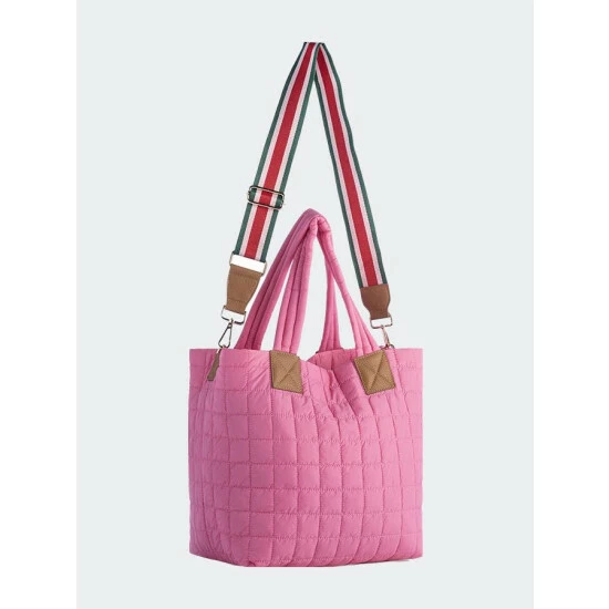 Perfect your on-the-go lifestyle with Shiraleah’s Ezra Tote. This tote features a sleek quilted texture and two sets of handles, made to carry handheld or as a cross-body, convenient for running hands-free errands around town. Measuring 21″ L x 9″ W x 13″ H and made from nylon, the Ezra Tote is equipped with a top zip closure and lots of pockets, capitalizing on all the space this tote provides. Pair with other items from the Shiraleah collection to complete your look.