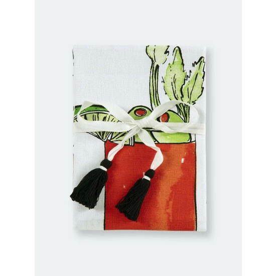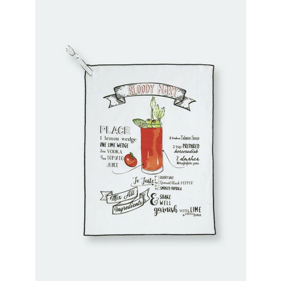 Liven up your bar or kitchen area with Shiraleah’s Bloody Mary Tea Towel. The towel features a water-colored sketch of a refreshing Bloody Mary and a recipe to go with it; perfect for brunch. The mixture of cursive and print fonts add an extra chic element to this charming tea towel. This product comes ribbon wrapped making it a great gift option. Mix with other Shiraleah cocktail items to complete your decorating!
