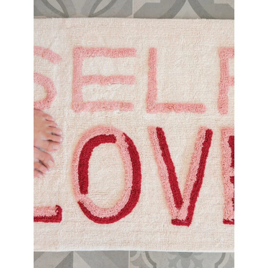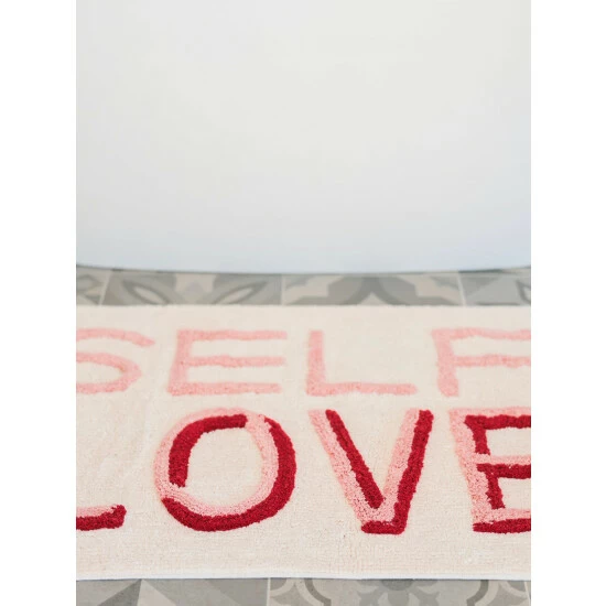 Give your bathroom a fun update with Shiraleah’s “Self Love” Bath Mat. This mat features a white background with pink and red lettering, adding a cheeky pop of color to your space. Measuring L 36″ x W 24″, and made from cotton, the Self Love mat provides functional use while adding style to your home. Perfect for your master or guest bathroom, this soft rug is a must have addition to your home. Pair with other items from the Shiraleah home collection to complete your look!