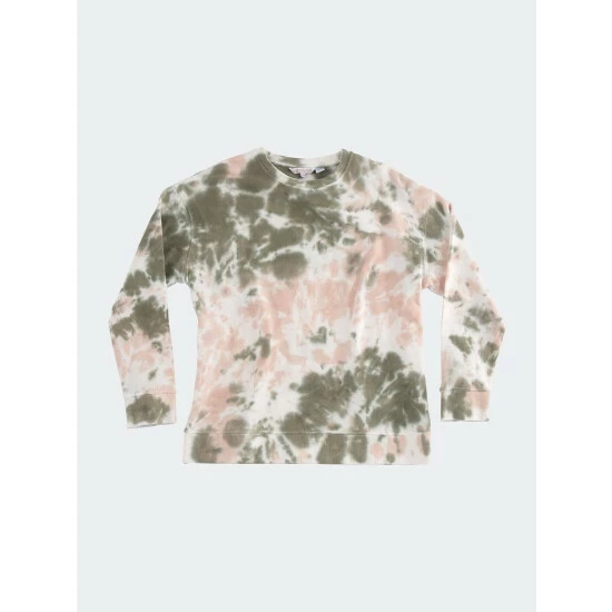 Achieve style and comfort with ease in Shiraleah’s Rae Tie Dye Sweatshirt. This sweatshirt features olive and blush tie dye hosted on a white background to evoke that free spirit feeling. The blend of dark green and light pink adds a feminine touch and makes this sweatshirt perfect for transitioning into fall. Pair with Shiraleah’s Rae Tie Dye Shorts to complete your set.