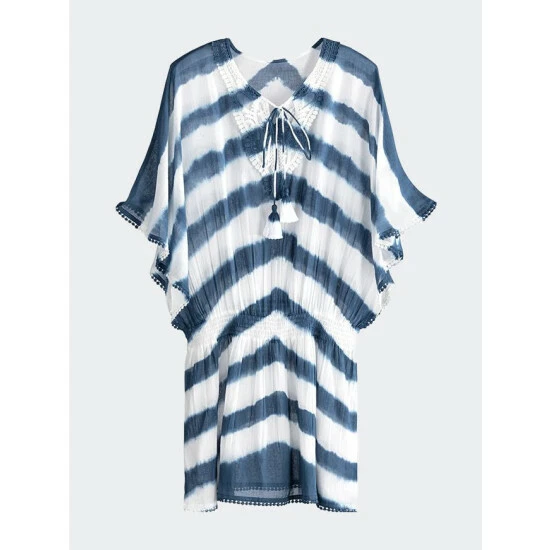 Create a chic poolside look with Shiraleah’s Sam Cover-up. This cover-up features a tie dye print, cinched waist, and crochet neck details, making it the perfect addition to your relaxing day near the water. Made from cotton, and one-size, the Sam Cover-Up is lightweight and breathable for comfortable wear. Pair with other items from Shiraleah to complete your beach ensemble.